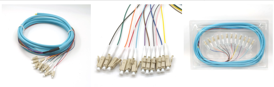 12 Fibers LC UPC Fiber Optic Pigtail OM4 Multimode 0.9mm Color-Coded Bunch Cable PVC LSZH