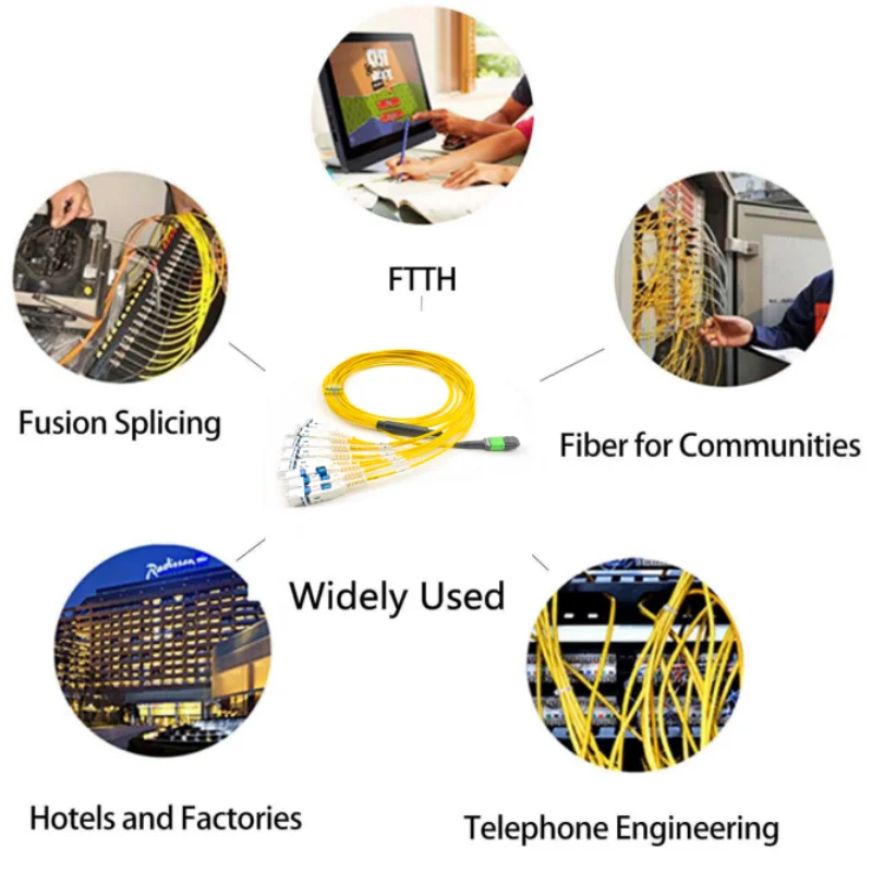 MPO breakout cable, a cost-effective alternative to time-consuming field termination, is designed for high-density fiber patching in data centers which need space saving and reduce cable management troubles. It is optimized for 40G QSFP+ PLR4 to 10G SFP+ LR,400G OSFP/QSFP-DD DR4 to 100G QSFP DR and 400G OSFP/QSFP-DD XDR4 to 100G QSFP FR optics direct connection and high-density data center applications.
