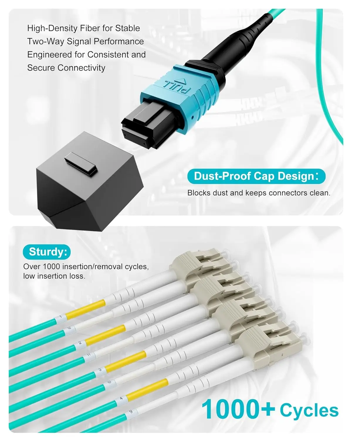 8Cores MPO Female to 4 x Duplex LC/UPC 50/125 Multimode Breakout Fiber Cable
