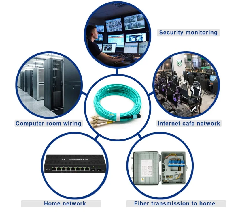 Custom MPO/MTP to 8 LC 10/40/100G OM3 OM4 Breakout Cable LSZH for Data Center