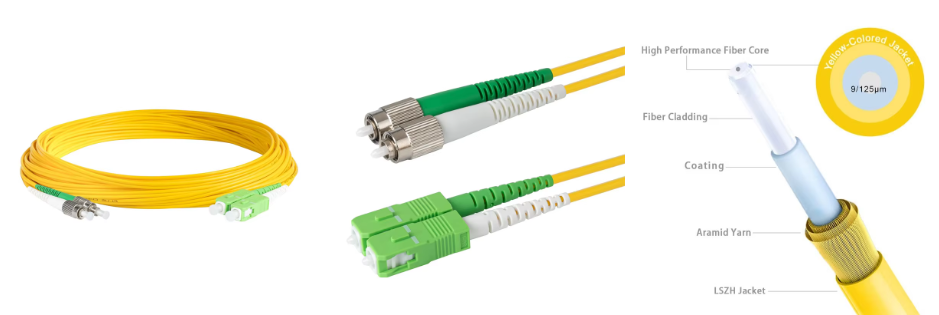 FC/APC to SC/APC OS2 9/125 G657A1 Single Mode Duplex Fiber Optic Patch Cord | FC SC Fiber Connector Cable