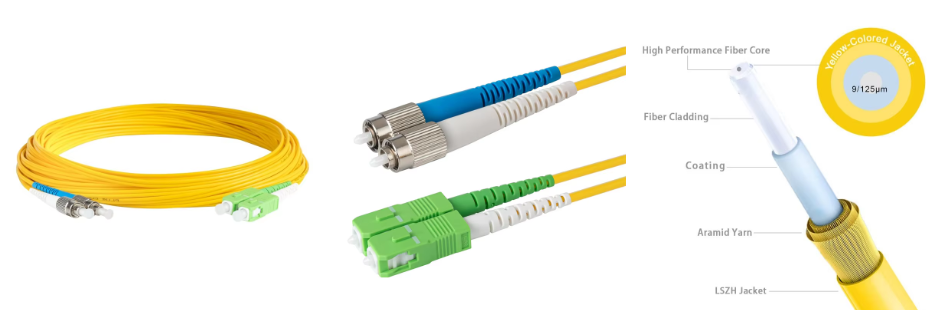 FC/UPC to SC/APC Single Mode OS2 9/125 Fiber Optic Patch Cord | Duplex & Simplex Jumper