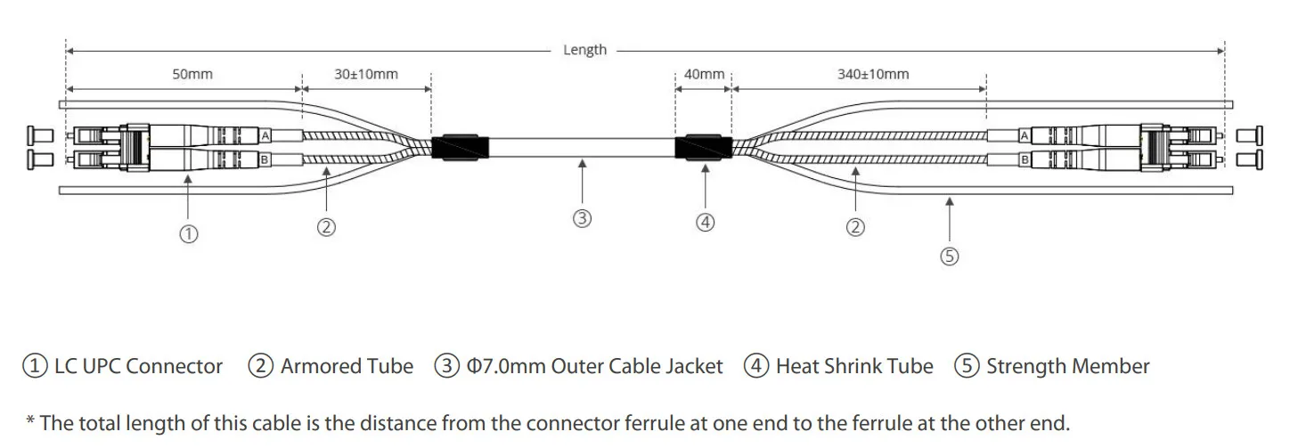 FTTA patch cable is designed for high reliability in heavy industrial and harsh environment applications, including fiber to the antenna solution. Consisting of fiber cable and LC UPC to FC UPC duplex connectors, the cable features superior crush resistance and a high degree of flexibility with the armored tube. Furthermore, the cable features a flame retardant LSZH jacket which is UV stabilized and highly resistant to chemicals commonly found in industrial environments, also suitable for both indoor and outdoor industrial installations
