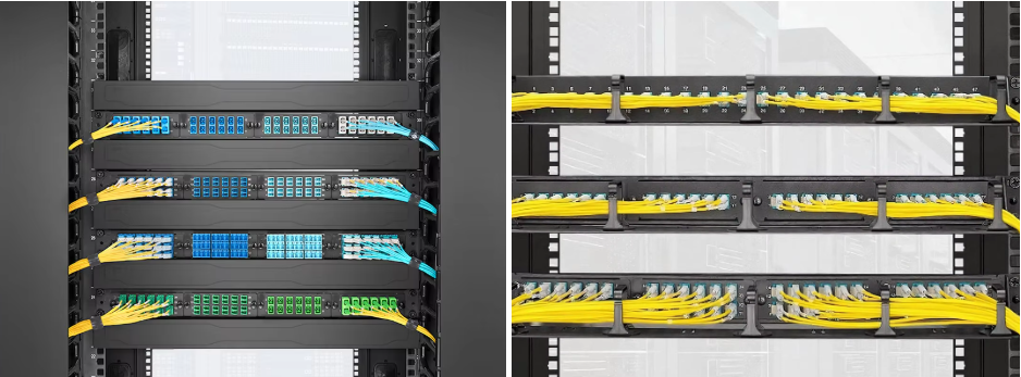 Designed for high-density applications in entrance facilities, telecommunications rooms, data centres, at the desk, and network applications.