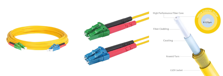 LC UPC to LC APC Duplex OS2 Single Mode 9/125 2mm Fiber Optic Patch Cord