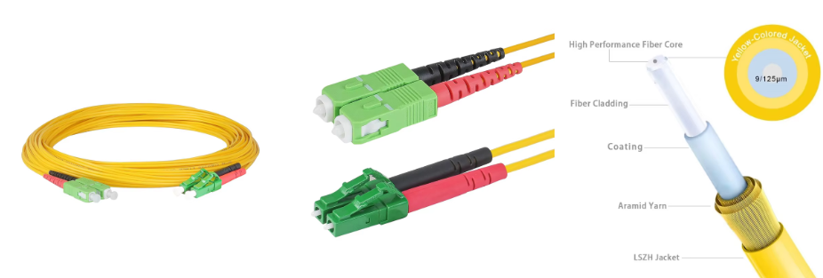 SC APC to LC APC OS2 Duplex Single Mode 2mm Fiber Optic Jumper Cable – Red/Black Boots