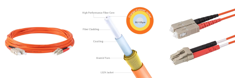 Customized Duplex OM1 62.5/125μm OM2 50/125μm Multimode SC UPC to LC UPC Fiber Optic Patch Cord