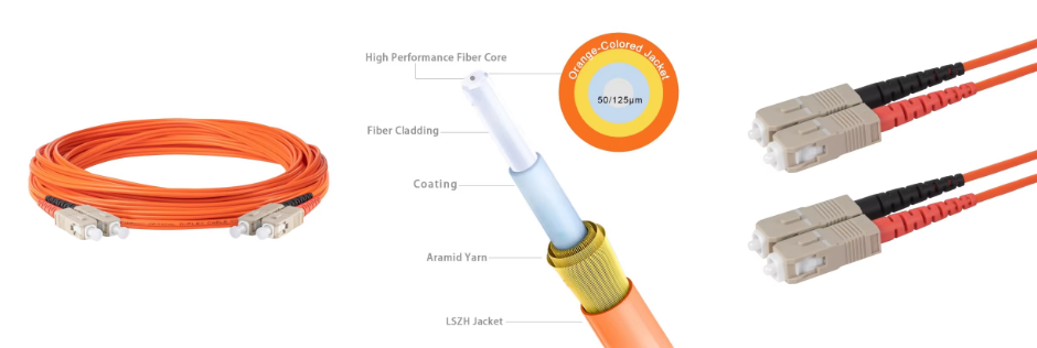 Customized Duplex OM1 62.5/125μm OM2 50/125μm Multimode SC UPC to SC UPC Fiber Optic Patch Cord