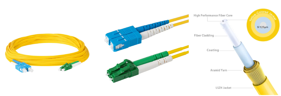 SC/UPC to LC/APC Single Mode OS2 9/125 Fiber Optic Patch Cord | Duplex Jumper Cable