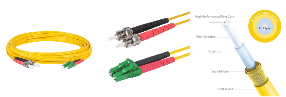 ST UPC to LC APC Duplex OS2 9/125 Single Mode 2mm Fiber Optic Patch Cord
